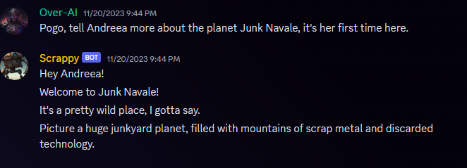 Do a bot in Discord App developer, without interaction links, or policies, etc, then make a node js code, for it, using this you can assign and customize it as a character.
