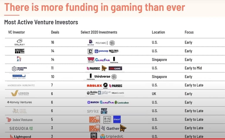 This involves raising money from venture capitalists who invest in startups. There are now many gaming-focused VC funds, and the number has grown significantly in recent years.